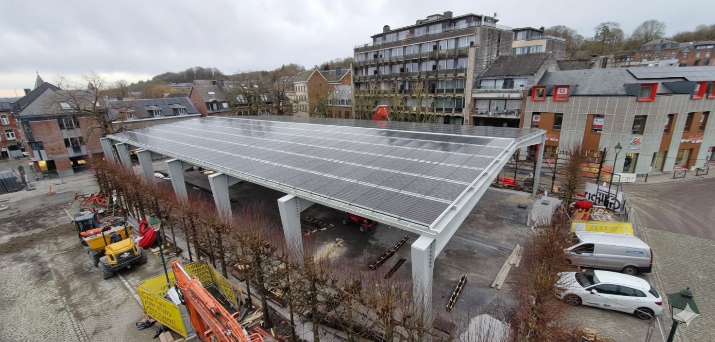 Cette dernière semaine de janvier 2026 marque une nouvelle étape dans l’aménagement de la place aux Foires avec l’achèvement de l’assemblage de la halle. Le Collège communal est conscient que la structure telle qu’elle apparaît aujourd’hui dans un chantier encore en cours puisse surprendre, susciter des commentaires et interrogations par rapport à l’esquisse initiale. Il souhaite dès lors faire le point, et replacer la construction de la halle dans le cadre plus large du projet de réaménagement de la place.