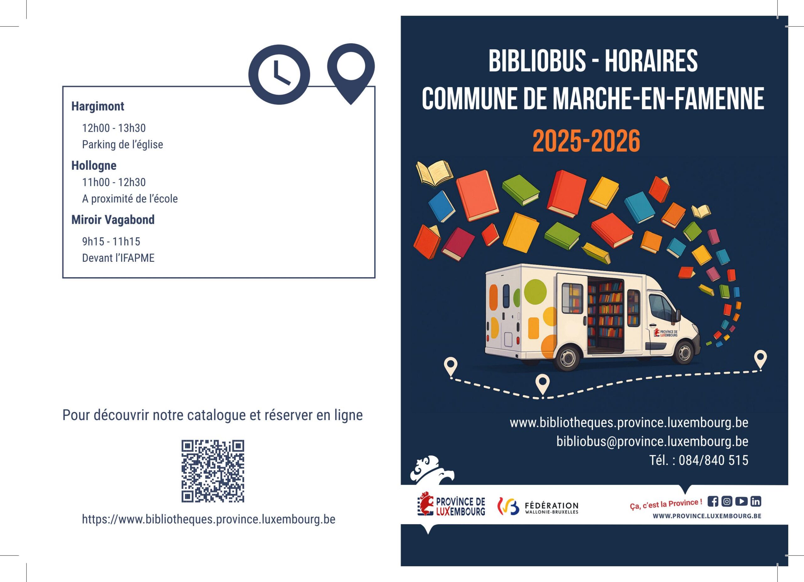 Mail : info@bilom.be ou info@bibliothequelocalemarche.be