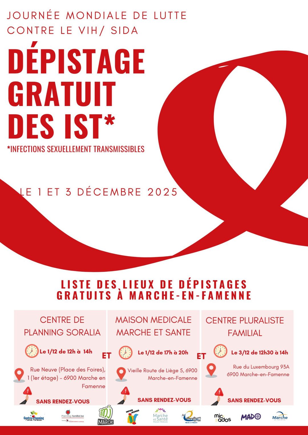 Agenda des manifestationsÀ l’occasion de la Journée mondiale de lutte contre le sida le lundi 1er décembre, plusieurs actions de sensibilisation et de prévention seront organisées à #marcheenfamenne.