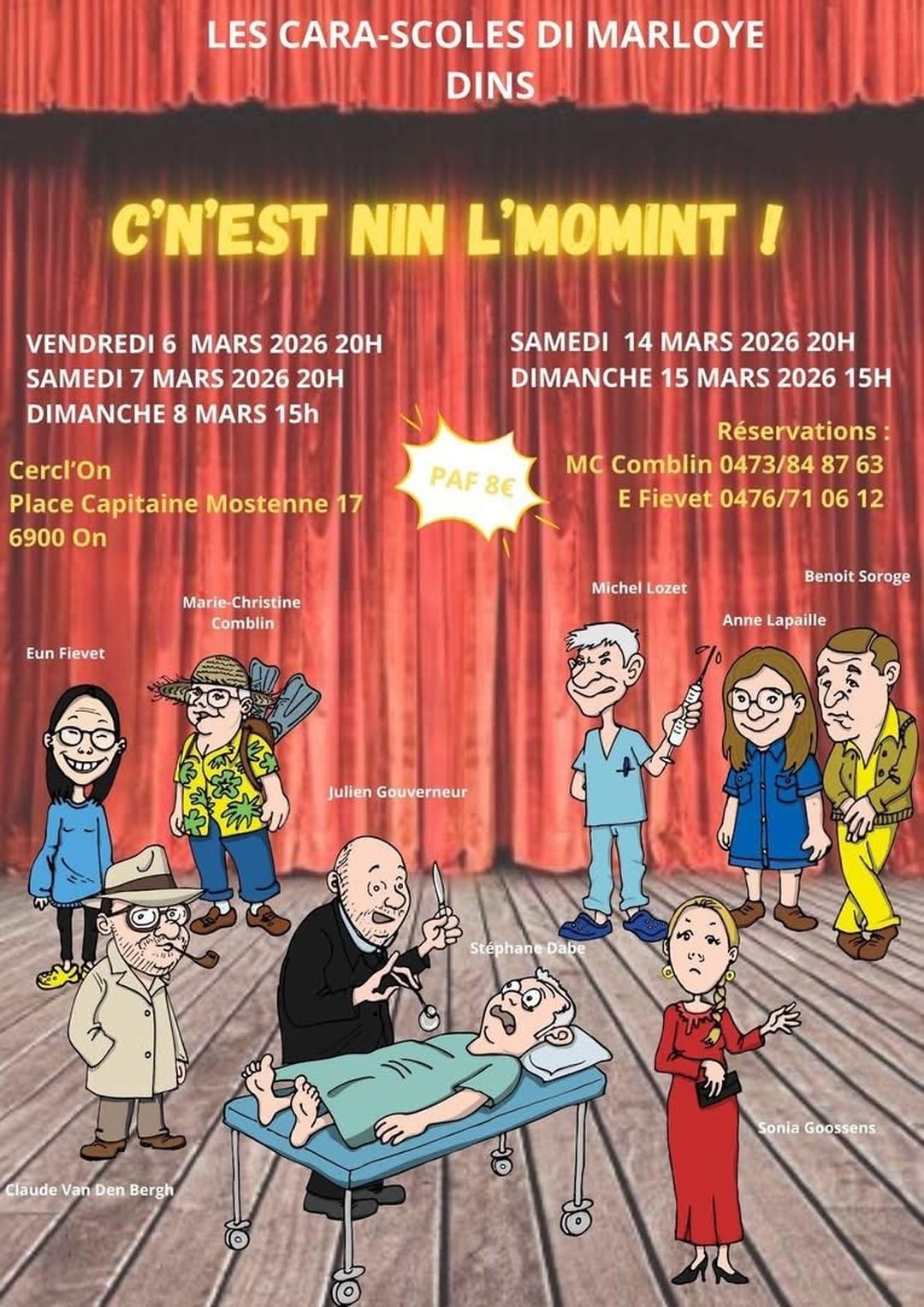 "Les Cara-Scoles di Marloye" joueront donc les vendredi 6, samedi 7 mars à 20h, le dimanche 8 mars à 15h ainsi que le samedi 14 mars à 20h et le dimanche 15 mars à 15h à la salle "Cercl'On" , Place Capitaine Mostenne,17 à On.