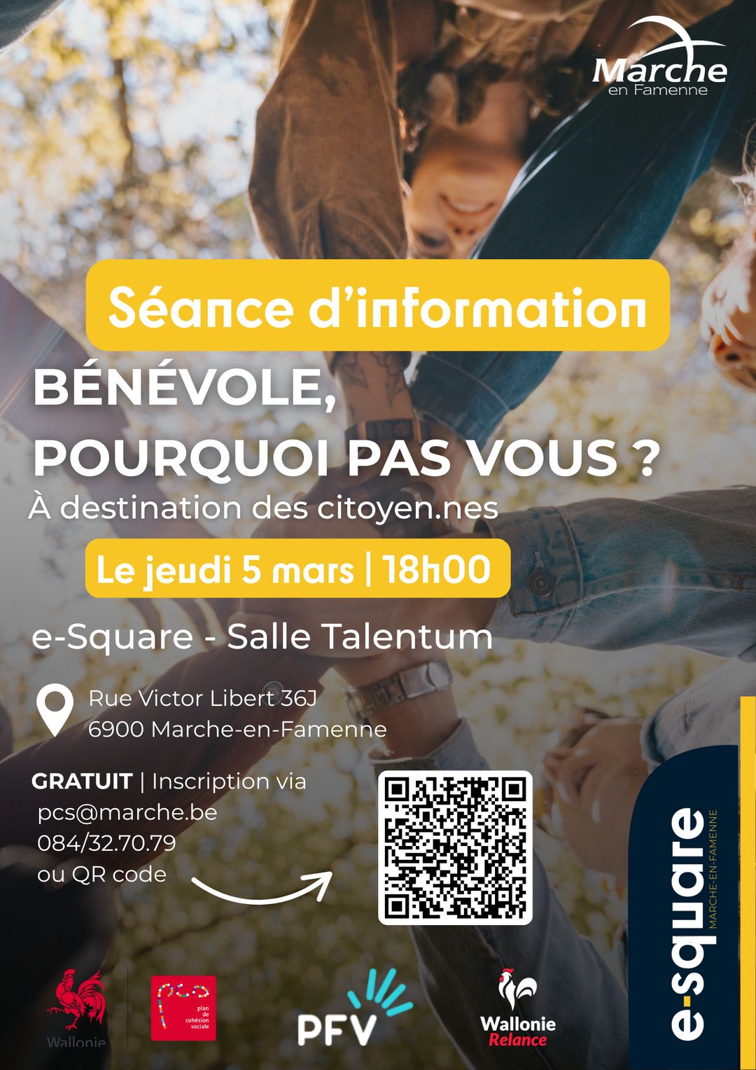 En ligne via ce lien : https://passpass.be/events/755/seance-dinformation-benevole-pourquoi-pas-vous?t=163b
